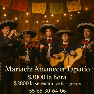 Mariachis de ciudad Mendoza ofrece una experiencia única con su equipo de mariachis profesionales que brindan un ambiente auténtico y emotivo en eventos. Ubicados en Prolongación de, Av.Hermenegildo Galeana 1912, 94740 Ver., México, cuentan con una ubicación estratégica para atender a clientes en la región. Para más información o reservaciones, se pueden comunicar al +52 272 143 1509. La calidad de su música en vivo y su capacidad para adaptarse a diferentes ocasiones los convierte en una excelente opción para aquellos que buscan autenticidad cultural en sus celebraciones.